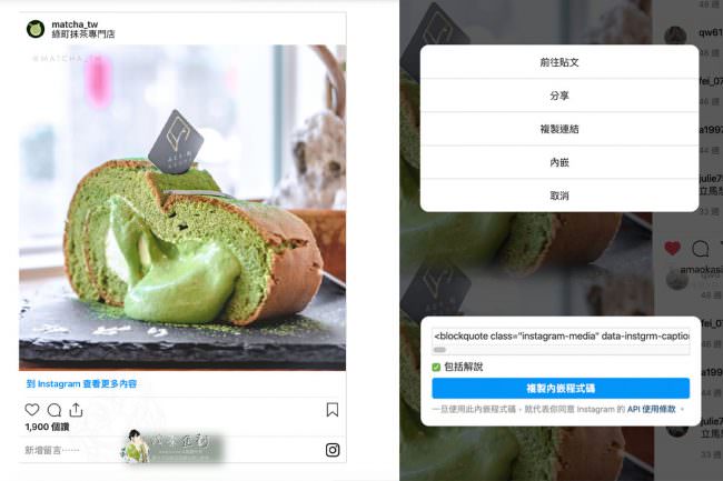 |結論:智慧財產局覺得,「嵌入」算是一種超連結,因為點擊會直接到我的matcha_tw的IG,所以不構成『重製』及『公開傳輸』行為,並且也不需要得到著作權人(也就是我)的同意。