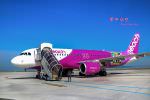 由於步行時間很短,所以也沒有接駁車,讓我能借此機會能拍到完整的樂桃班機。