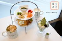 甜點的部分,個人最喜歡鬆餅了,口感細緻並帶有淡淡的蛋香,點綴的鮮奶油完全不油膩;輕乳酪蛋糕濕潤軟綿,和捲心酥一樣本身帶有甜度,單吃就很美味;軟法的話我覺得是其中最適合沾抹茶白巧克力醬的一款;抹茶戚風蛋糕建議是趕快品嚐,若是放久了,外層會較乾澀一些。